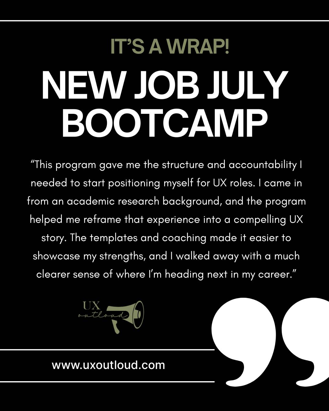 Hey Reader, My recent bootcamp program New Job July might be over, but the growth continues. ✨ Every round of this program teaches me something new about what it really takes to move from wanting a UX job to actually landing one and this summer’s cohort was no exception. One participant came in with years of academic and pharmaceutical research experience and wanted to transition into UX research. He was looking for a faster, more focused alternative to traditional UX bootcamps — something...